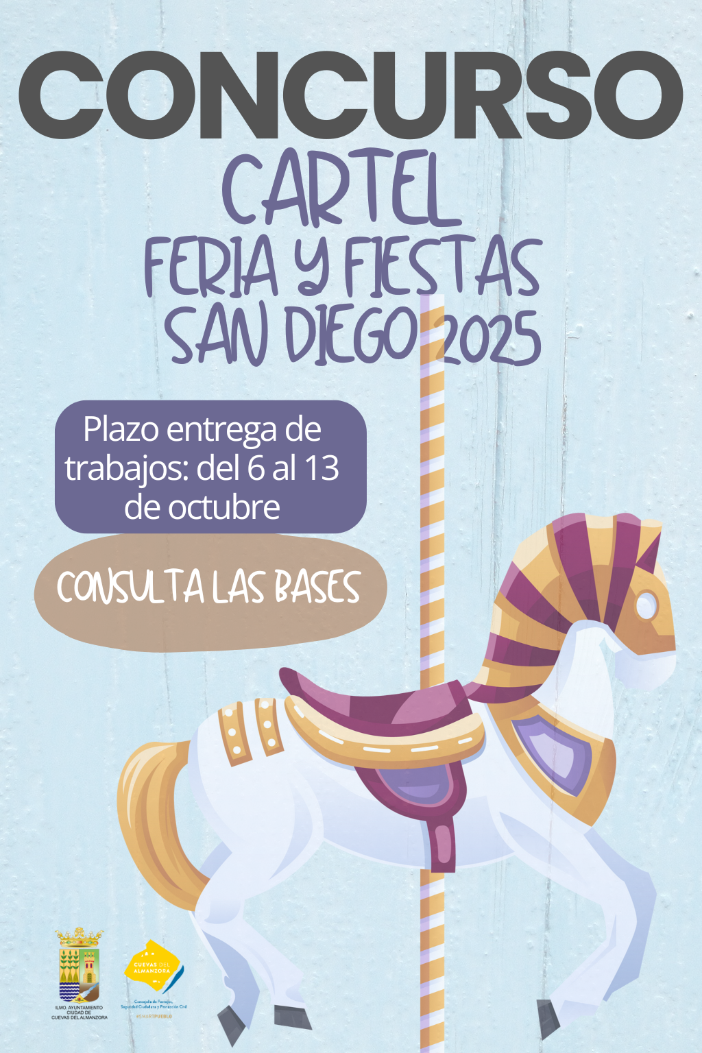 Cuevas convoca el Concurso para elegir el Cartel de las Fiestas de San Diego 2025 16/09/2025 •El plazo estará abierto del 6 al 13 de octubre •Se establece un único premio de 300 euros